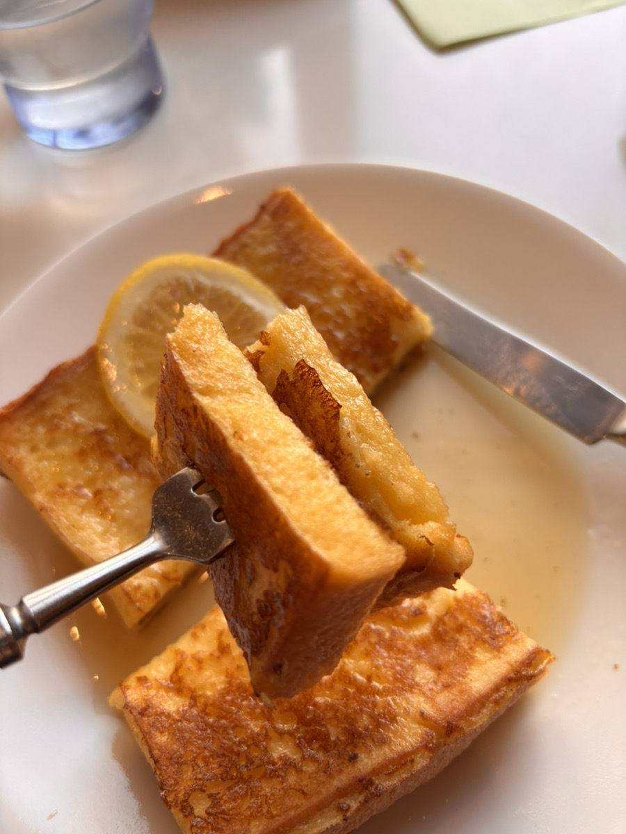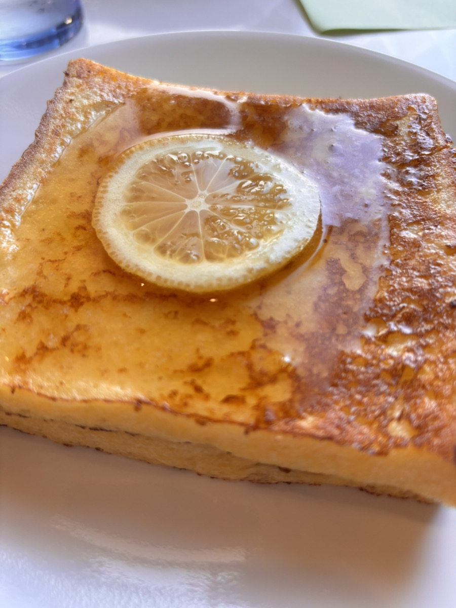 ここのフレンチトーストは、バターや卵は控えめ、レモンのさっぱりさとメイプルシロップの甘さがマッチし、とても美味しかったです。